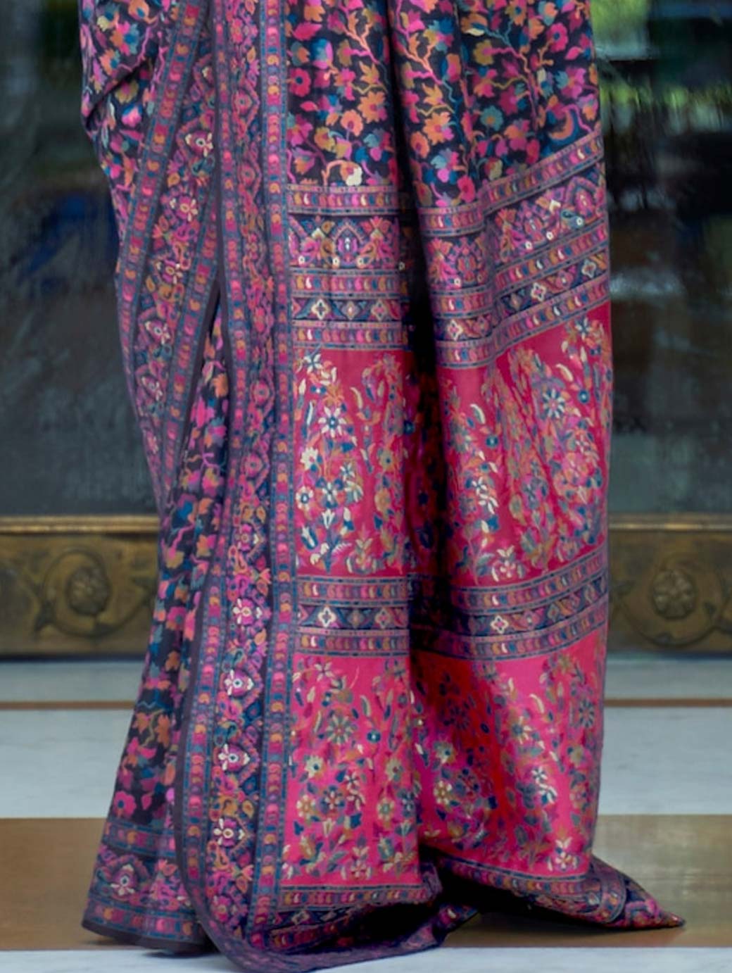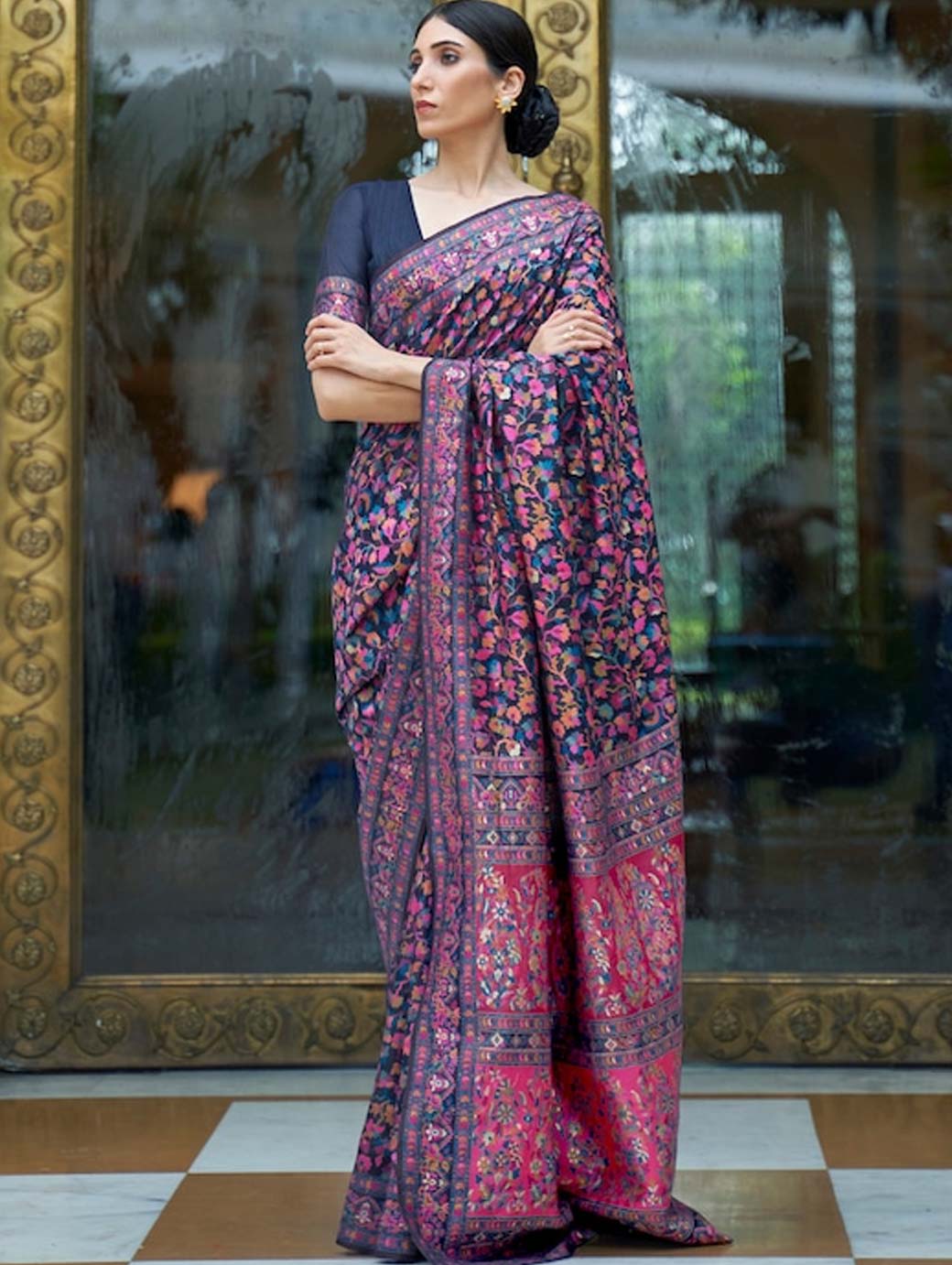 Navy blue and pink banarasi saree